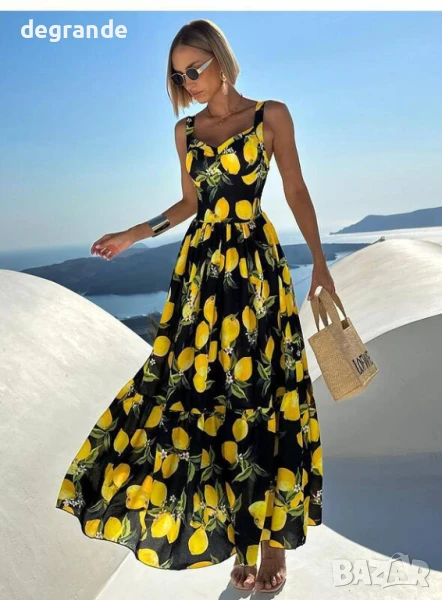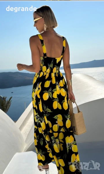 Черна дълга лятна рокля с лимони