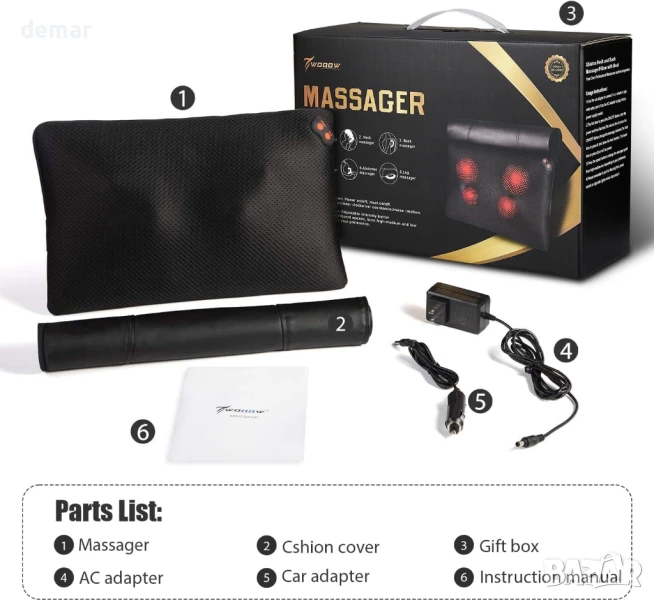 WOQQW Масажна възглавница с топлина, Шиацу масажор, Дълбок масаж