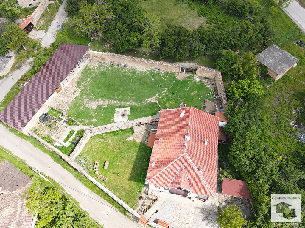 Имотът включва голям, равен, добре поддържан двор, ограден с каменна и тухлена ограда.
