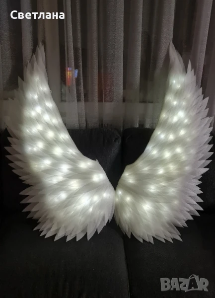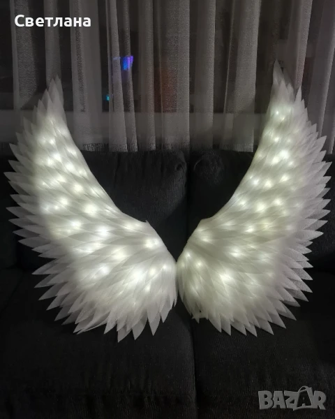 Ръчно изработени СВЕТЕЩИ АНГЕЛСКИ КРИЛА за декорация или фото кът. Работят с батерии (включени в комплекта) Посочената цена е за крила, които са големи 1м. Не са налични и можем да ги изработим във всеки размер.