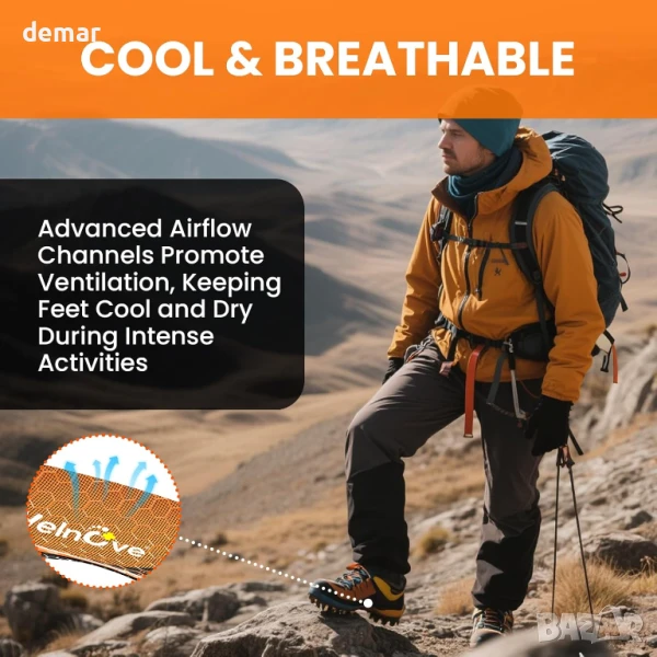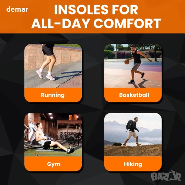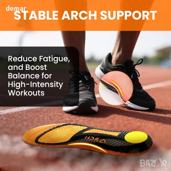 Проектирани за динамично движение, тези стелки разполагат с чувствителна GEL подложка в предната част на стъпалото за подобрено отскокване, Poron омекотяване на петата за абсорбиране на удара и дишаща PU пяна основа, която поддържа краката свежи. Кадифената повърхност с противоплъзгащи шестоъгълни шарки предлага комфорт и стабилност, докато удължен TPU стабилизатор на свода поддържа средната част на стъпалото, за да намали умората по време на продължителна активност.