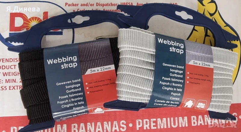 Продавам чисто нови пропиленови лента-колани който са дълги 5м и широк 22мм. В 3 цвята от тях може да се изработят колани,столове,дръжки на чанти или повод за куче и още много други неща. внос от Германия,цената е за брой.