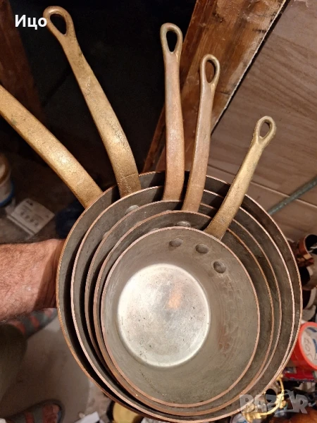 Дебелостенни медни касероли Франция цена на комплект 350лв