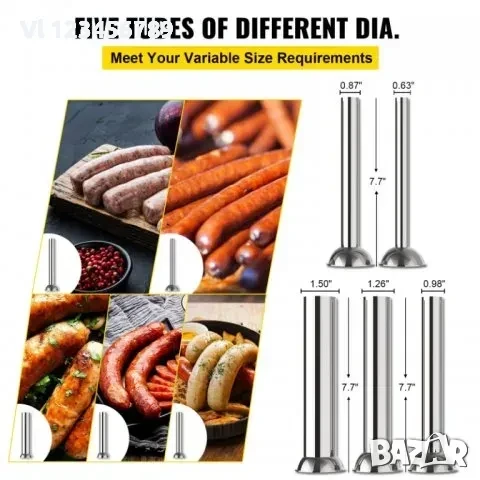 5 литра вертикална пълначка с 2 скорости , цилиндър от неръждаема стомана .С 4 фунии - неръждаеми, иноксови с различен диаметър: 15, 20, 30 и 35мм