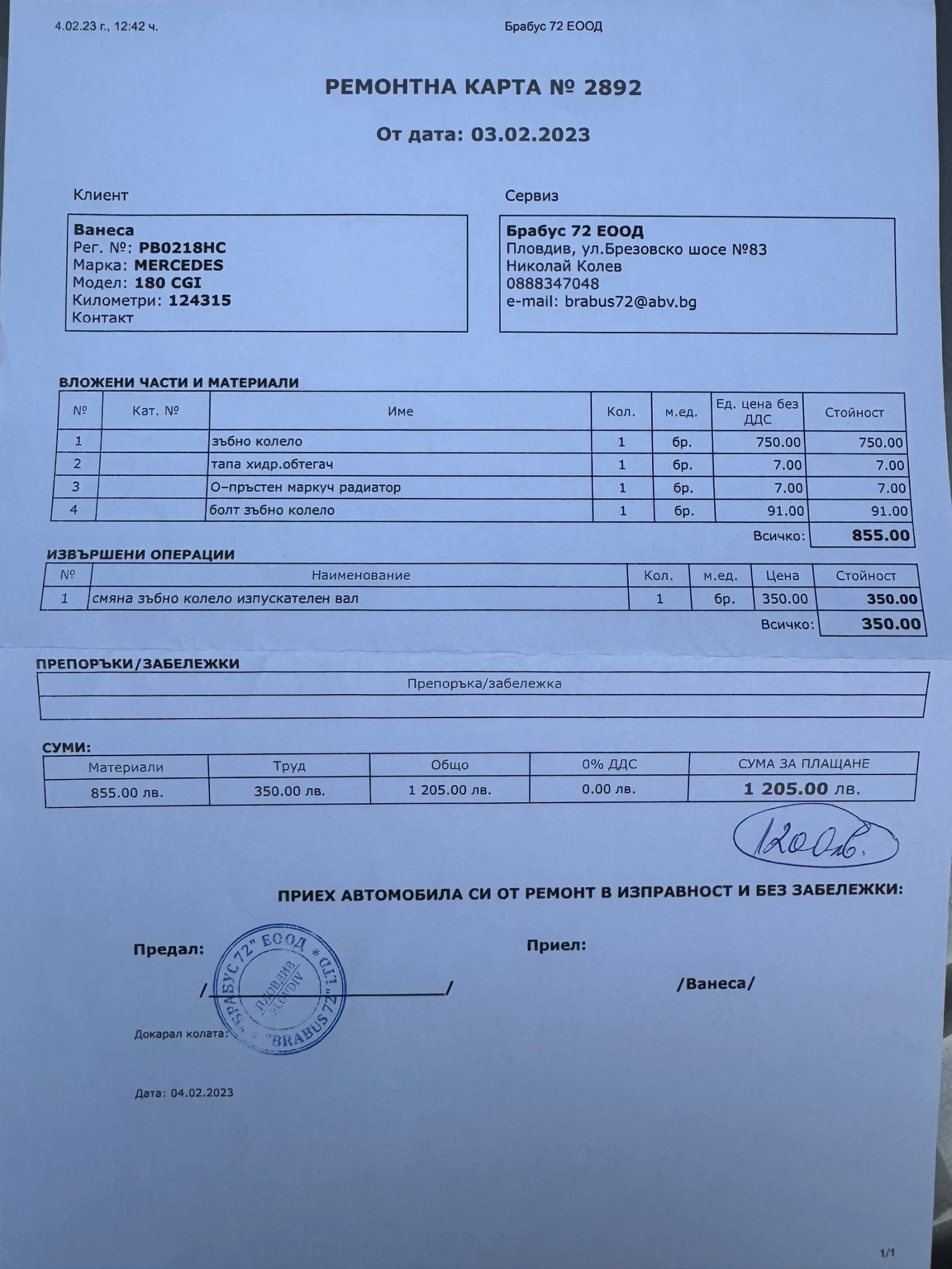 • • Сервизна книжка