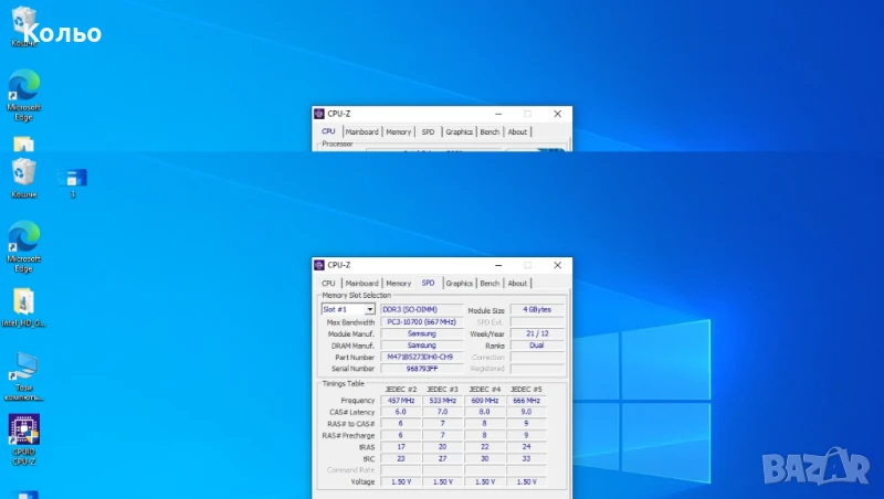 Параметрите се виждат на снимките със CPU-Z.