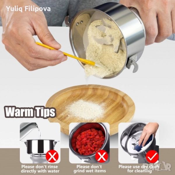 Мощна електрическа мелница за зърно и подправки – 150 г капацитет, 850W за бързо и фино смилане → Обява 50799565