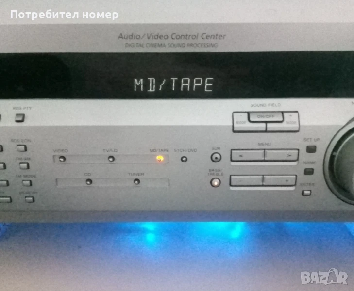 ресивър SONY STR-DE435. Траф 390 Вата. Транзисторите са 150-ватови. Има стандартен потенциометър за усилване, а не безкраен. Така си развива мощността, като стерео-усилвателите. В стерео-режим е с номинална мощност не по-малко от 60 W на канал. Звучи добре с 100-120 W тонколони. Сравнявал съм го с 2х65W усилвател от последната снимка. В многоканален режим е препоръчителна употреба на 60-70 W колони със съпротивление най-малко 8 Ома. С 4 мощни колони първо ще изгори трафа. Освен Бас-корекциите на 100Hz има и BASS BOOSTER на 70Hz. При свързване на компютър към многоканалния вход дава бас към всички входове.Има много греещи компоненти. Подобрено охлаждането на няколко места, включително добавени радиатори към основния. С по-хладни чипове и транзистори следва по-ниски хармонични изкривявания. В момента усилвателят е по-хладен от фабричния вариант. Въпреки всичко може да се махне долния капак за повече въздух. Лятото може да се измисли някакво охлаждане с вентилатор под него (снимка 10). Иска свободно място от всички страни. Да не се поставя в ниши и да няма нищо върху него. Предните колони трябва да са само в А гнездо. Иначе се вдига тока и грее много. От Сони изрично предупреждават, да не се ползва мултиканално аудио и А+Б входове заедно. Легендата е на гърба на усилватела. А и ресивърът има отделни канали специално за задните. Видео в Ю-туб за работата. Втората снимка го показва. Там работи с 2 колони на 100 Вата и 2 колони на 60 Вата, включени за задни.
