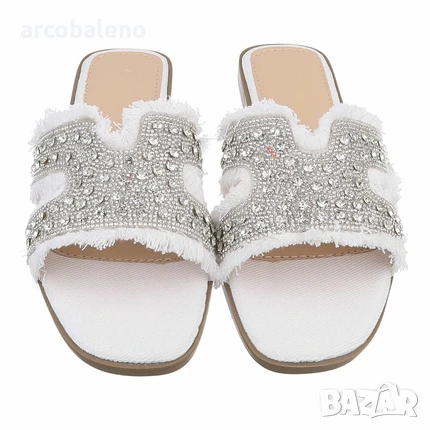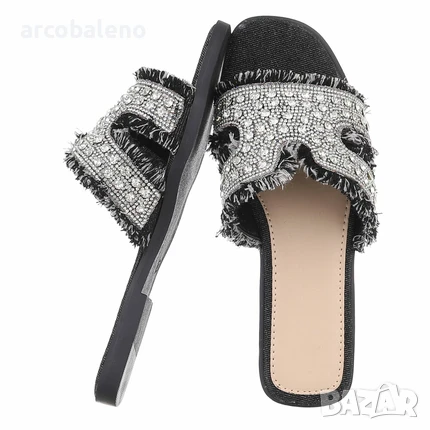 Изживейте вълнуващото великолепие на лятото с нашите изящни плажни сандали, които перфектно съчетават елегантност и комфорт. Тези модерни сандали, изработени от висококачествени материали, се отличават със стилен дизайн с блестящи, искрящи детайли и модерна апликация с ресни. Отвореният връх и широките презрамки осигуряват оптимална вентилация и адаптивна опора. Идеални за спокойни дни на плажа или празнични летни вечери, тези сандали могат лесно да се комбинират с множество тоалети. Независимо дали с лятна макси рокля или елегантни шорти, те са перфектният спътник за всеки повод. Подплатената стелка гарантира максимален комфорт, така че можете да ги носите стилно и удобно през целия ден. Тези сандали са идеалният избор за модно ориентирани жени, които искат да блеснат както в ежедневието, така и в свободното си време. Нека лятото започне с перфектните обувки!