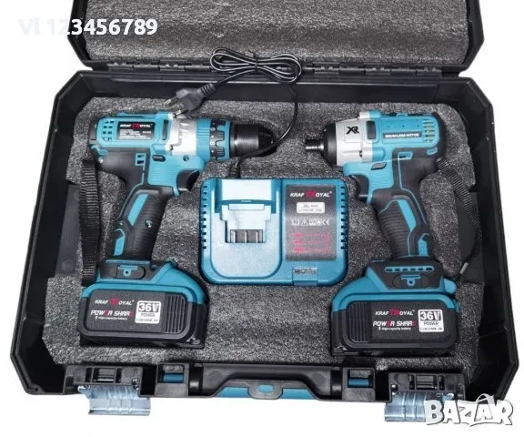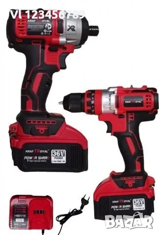 Безжични акумулаторен ударен гайковерт и акумулаторен винтоверт 36V 8,0AH KRAFT ROYAL к-кт (2 в 1)