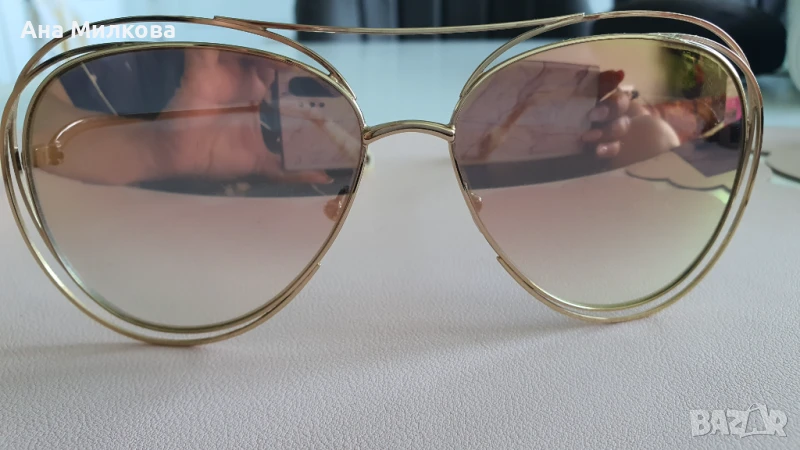 * Цвят: Златиста метална рамка, градиентни стъкла в розов/кафяв нюанс, дръжки с мраморен ефект.