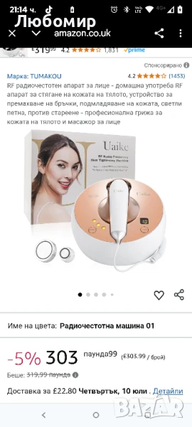 RF радиочестотен апарат за лице - RF апарат за стягане на кожата на тялото, устройство за премахване на бръчки, подмладяване на кожата, светли петна, против стареене - професионална грижа за кожата на тялото и масажор за лице.Професионален RF радиочестотен апарат за лице】 - RF радиочестотният апарат за лице използва биполярна радиочестота, за да преобразува електрическата енергия в топлинна енергия и дълбоко в дермата да повиши температурата, да ускори кръвообращението на дермата и подкожната тъкан, да свие и стегне кожния колаген, да стимулира и преоформи колагена, за да постигне множество козметични ефекти.3 нива на енергия за третиране】 - Апаратът за стягане на кожата на тялото с радиочестота има 3 нива на енергия. Можете според вашите нужди да изберете подходящо ниво на енергия, което е безопасно и ефективно. Има и бутон за регулируемо време, когато изберете времето за третиране, то ще се покаже на екрана, което е много удобно.Направете си красота на цялото тяло у дома】 - RF радиочестотният апарат за лице има сонда за лице и сонда за тяло, сонда за лице за третиране на лице и сонда за тяло за третиране на тялото, което ви кара да се наслаждавате на красотата на цялото тяло. Може да се използва под очите, на челото, в назолабиалната гънка, на лицето, врата, ръцете, корема, талията, краката, бедрата, дупето, стомаха и др. Помага за намаляване на появата на фини линии, матов тен, бръчки, бръчки тип „пачи крак“, стрии, стяга отпусната кожа, подобрява текстурата и еластичността на кожата и още!Според 40 000 резултата от различни клиенти, 87% от клиентите са видели видимо подобрение на кожата само след 2 седмици