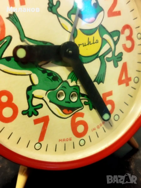 Стар механичен анимиран будилник Ruhla GDR, работи и звъни.Диаметър-97 милиметра.Номер на будилника-614008
