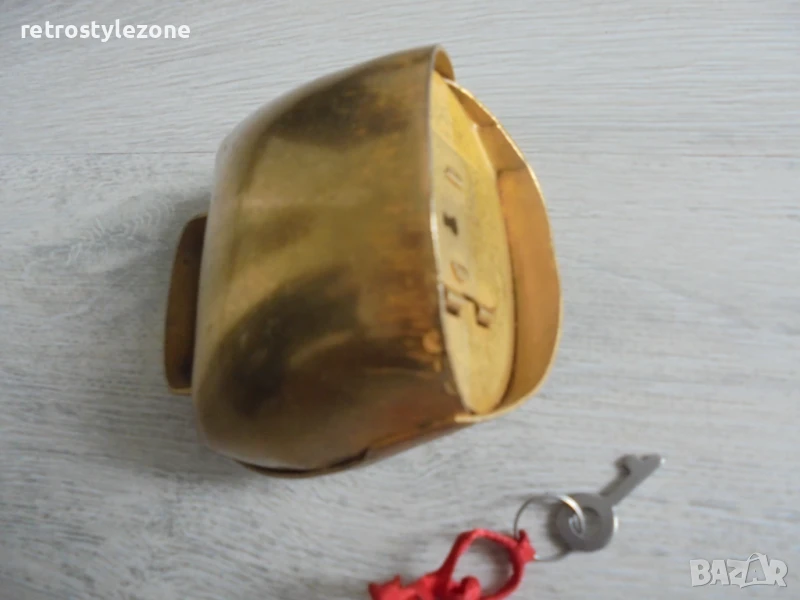 Метална касичка с винтидж излъчване – метален корпус и оригинално ключе за заключване. Идеална за колекционери, декорация или ползване като практична спестовна кутия.