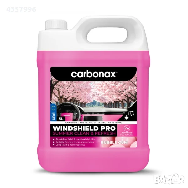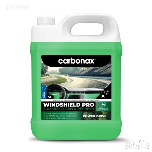 Насладете се максимално на пътуването през лятото с кристална видимост! CARBONAX® Windshield Pro премахва ефикасно отлагания от насекоми, полен, прах и всякакви мръсни и омазнени наслоявания. Безопасна формула с дейонизирана вода за почистване без замазване и предпазване на стъклопочистващата система. Съвместима с боя, гумени и пластмасови покрития. Подходяща за ветрилообразни дюзи и поликарбонатни фарове. Начин на употреба: Течността е готова за употреба. Просто отвийте капачката на тубата и излейте желаното от Вас количество препарат в резервоара за течност за чистачки.