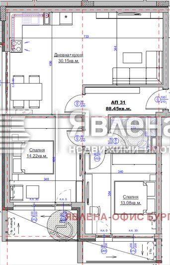 Агенция Явлена продава тристаен апартамент на трети етаж, с площ 100,90кв.м в новострояща се жилищна сграда, разположена до централния плаж на гр.Царево.