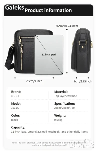 А това допринася за свободата да добавяш в нея много документи, служебни и лични вещи и таблет 12”. Тази модерна чанта е направена от най-висококачествена телешка кожа 5+ и е подходящ спътник както в натовареното Ви ежедневие, така и в свободното време!