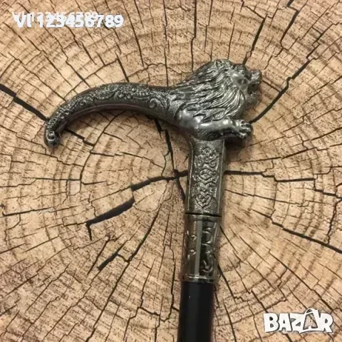 Елегантен бастун с метална дръжка и вграден кинжал 29 см LION CANE