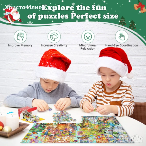 Детският адвент календар пъзел 2024 е с размери 70 * 50 см, с общо 1008 части, разделени в 24 кутии по 42 части във всяка кутия. Гърбът съответства на същия номер на датата и всяка малка кутийка може да се сглоби в цялостна част. Приложени са чертежи на пъзела в мащаб 1:1. Опаковката е опакована в кутия с коледна тематика, с размери 28 * 26 * 5 см и тегло 900 г.