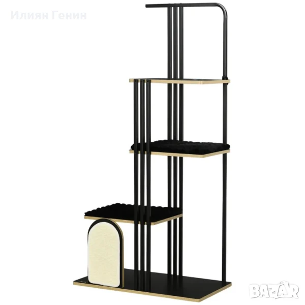 Дърво за котки PawHut, Индустриален дизайн, 3 платформи, 2 възглавници, Стена за драскане, Стоманена рамка, Черен, 85 x 48 x 170 см - 190.00лв.