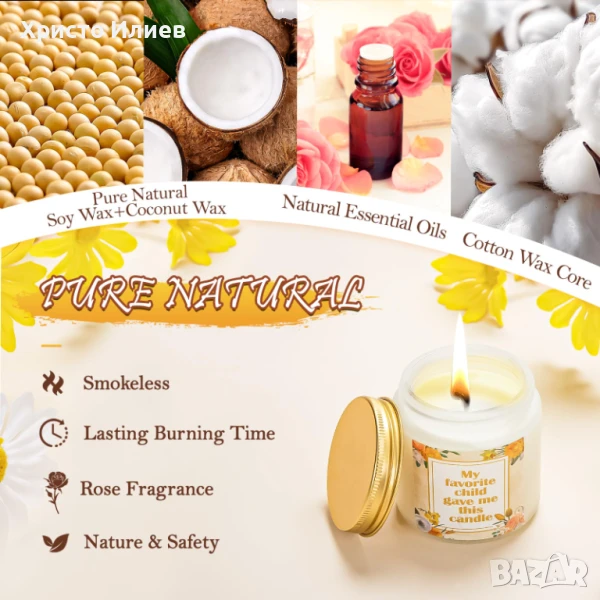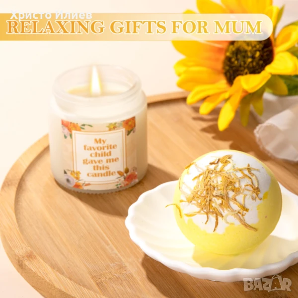 Подаръчен комплект за облекчаване на стреса в спа център - Ароматната свещ в този подарък за мама е направена от чисто растително етерично масло от роза и естествен восък, което гарантира, че е нетоксична и без дим. Гори равномерно до 20 часа. Бомбата за вана с аромат на лайка и солите за вана са обогатени с естествени етерични масла, подхранващи кожата и помагащи за облекчаване на умората, осигурявайки на мама луксозно изживяване при къпане. Грижата за себе си и релаксацията никога не са били толкова лесни!