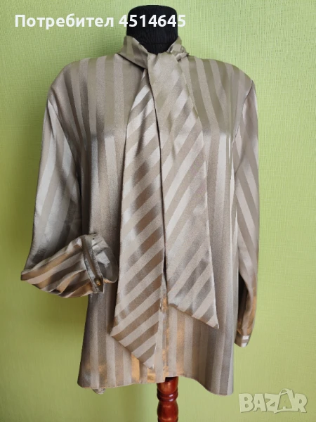 Елегантна сатенена блуза с дълъг ръкав и панделка, размер L. Възможност за лично предаване в района на Младост 1.