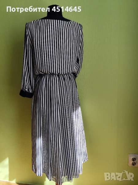 Официална дамска рокля елегантен стил с подплата, приятна немачкаема материя с модерен десен райе, размер L, обличана два пъти, но вече не ми е по размер, за съжаление.В отлично състояние.