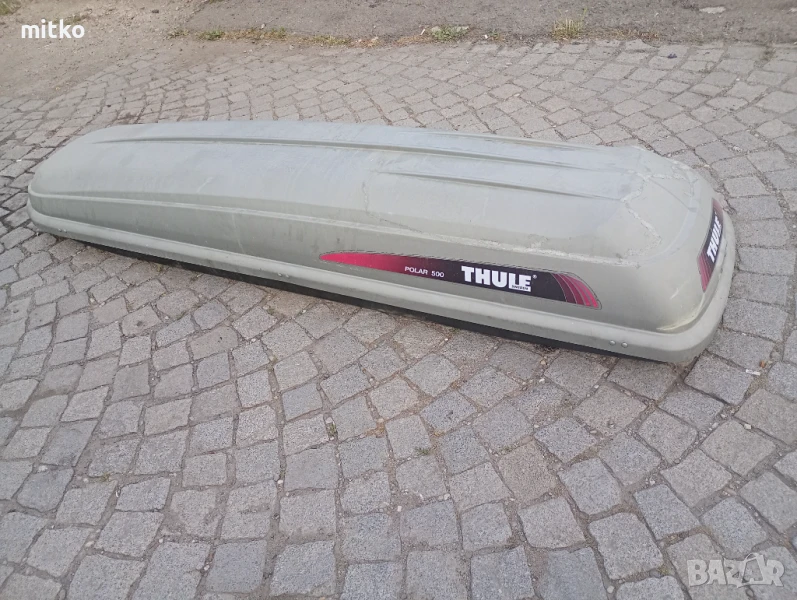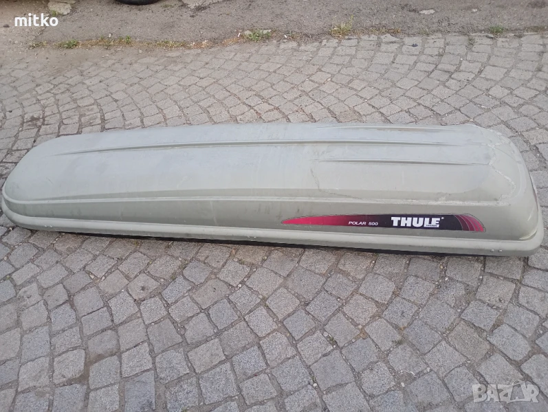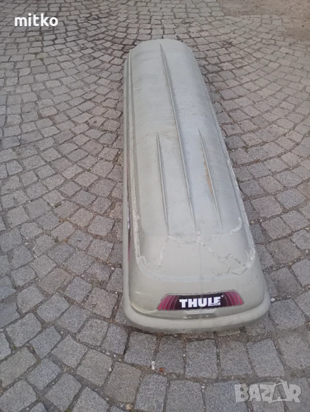 Автобокс Thule,има забележка лепен е отгоре но не пропуска,цената е съобразена с това.размера е 230/50 мисля