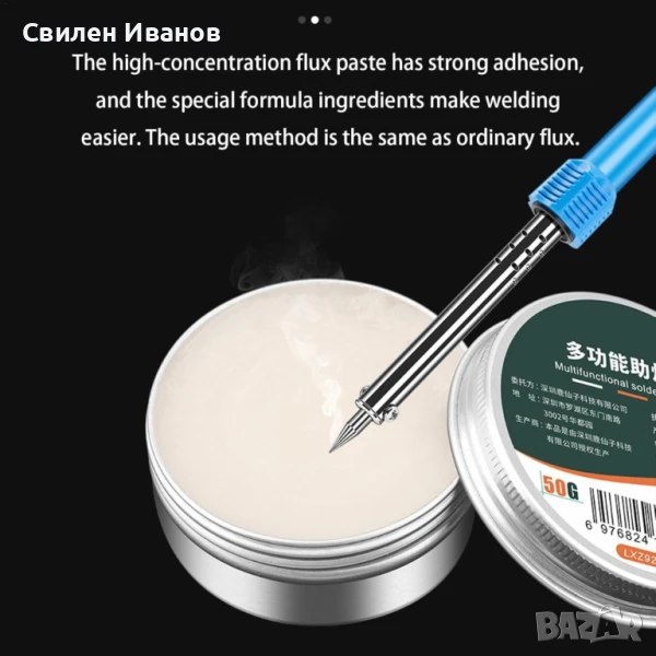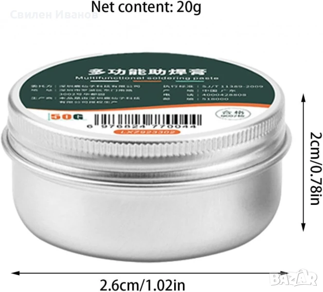 Флюсова паста за запояване – 20 г метална паста за мед, неръждаема стомана и ВиК ремонти, снимка 1 - Поялници и запояване - 50806320 Флюсова паста за запояване – 20 г метална паста за мед, неръждаема стомана и ВиК ремонти, снимка 2 - Поялници и запояване - 50806320 Флюсова паста за запояване – 20 г метална паста за мед, неръждаема стомана и ВиК ремонти, снимка 3 - Поялници и запояване - 50806320 Флюсова паста за запояване – 20 г метална паста за мед, неръждаема стомана и ВиК ремонти, снимка 4 - Поялници и запояване - 50806320 Флюсова паста за запояване – 20 г метална паста за мед, неръждаема стомана и ВиК ремонти, снимка 5 - Поялници и запояване - 50806320 1/5