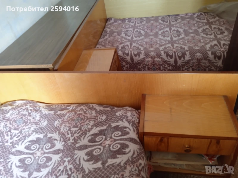 2. Ъглова спалня от две легла с тоалетни шкафчета към тях + пружини и дюшеци - 2х95 лв. = 190 лв.