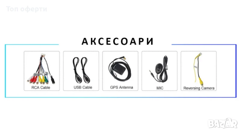 В комплекта: мултимедия, монтажна рамка, ISO кабели, CAN модул (ако е необходим), камера за задно виждане