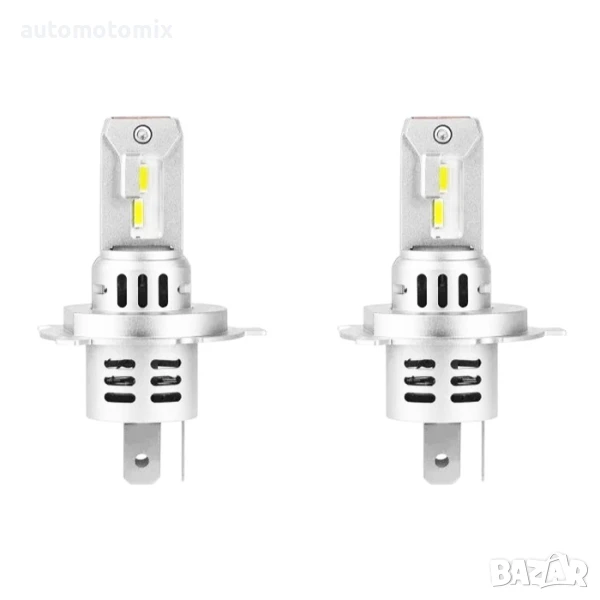 - Ултра компактен LED заместител за конвенционални лампи за дълги и къси светлини H4