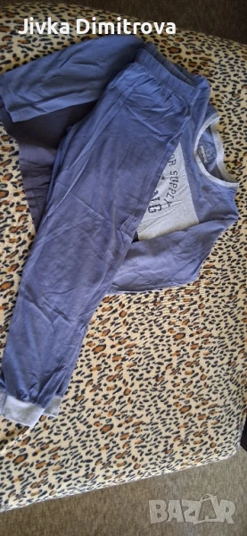 Предлагам пижама за момченце, цвят син-сив. Използвана е, но в добро състояние. Подходяща за уютни нощи у дома.