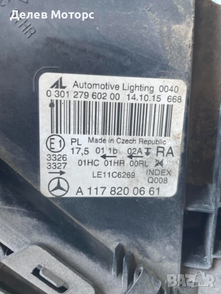 Фар A1178200661 десен за Mercedes CLA 180 Sport двигател 270910, 1.6i 122 кс., 6 ск., 165 000 km., 2016 г., Мерцедес ЦЛА 180, engine 270910, 1.6i, 122 hp., 6 sp. в автоморга Delev Motors, между с. Каменар и с.Куманово гр. Варна. ВСИЧКИ ЦЕНИ СА С ВКЛЮЧЕНО ДДС. ВСИЧКИ ЧАСТИ СА С 14 ДНИ ПРАВО НА ВРЪЩАНЕ. Изпращане на части чрез наложен платеж с ЕКОНТ с 30% отстъпка от куриерските услуги за цялата страна, получаване на следващият ден. Доставката и връщането е за сметка на КУПУВАЧА. Изкупуване на западни и японски автомобили, джипове и бусове след 2020 г. за части. Издаване на удостоверение за бракуване пред КАТ. Издаване на всички необходими документи за регистърация на двигател в КАТ. РАБОТНО ВРЕМЕ ОТ ПОНЕДЕЛНИК ДО ПЕТЪК от 9.00 ч. до 18.00 ч., ПОЧИВНИ ДНИ СЪБОТА И НЕДЕЛЯ. За контакти: 0897852371
