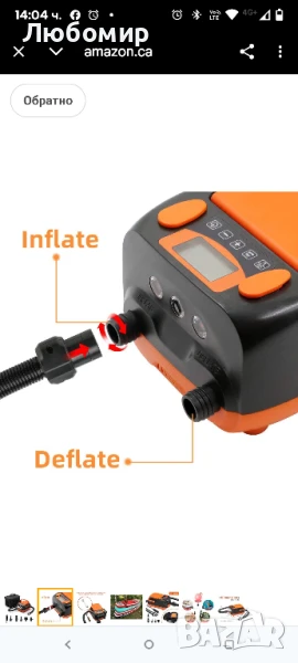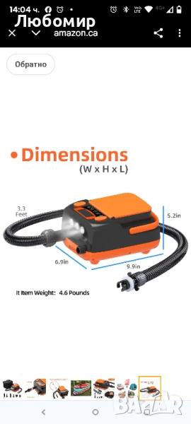 LCD PSI дисплей и автоматично изключване: Работещата с батерии помпа с гребло поддържа наблюдение на налягането в реално време с вградения LCD цифров дисплей. Можете да зададете целевото налягане и да го наблюдавате в реално време. Тя ще се изключи автоматично, когато бъде достигнато предварително зададеното налягане. Напълно автоматичната работа улеснява надуване или изпускане на ISUP, надуваеми палатки, надуваеми салове, каяк.