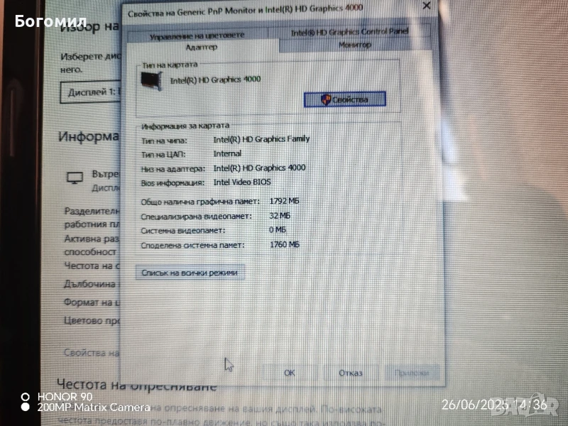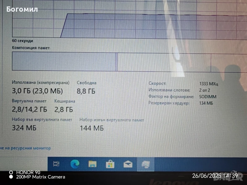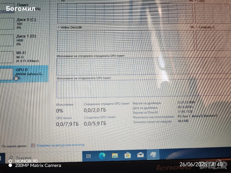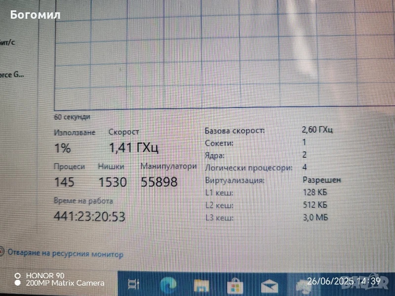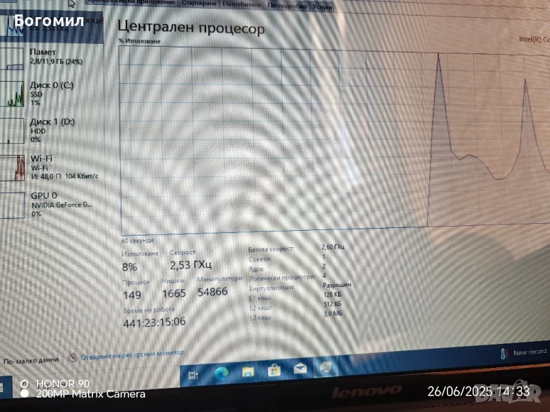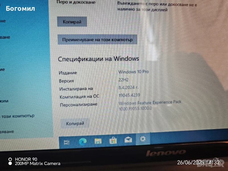 лаптопа е като нов няма следи от употреба основно SSD 110 г на мястото на записвачката е сложен един терабайт хард диск всички основни характеристики са качени като снимки моля само за сериозни купувачи Вече е инсталиран на Windows11 pro.