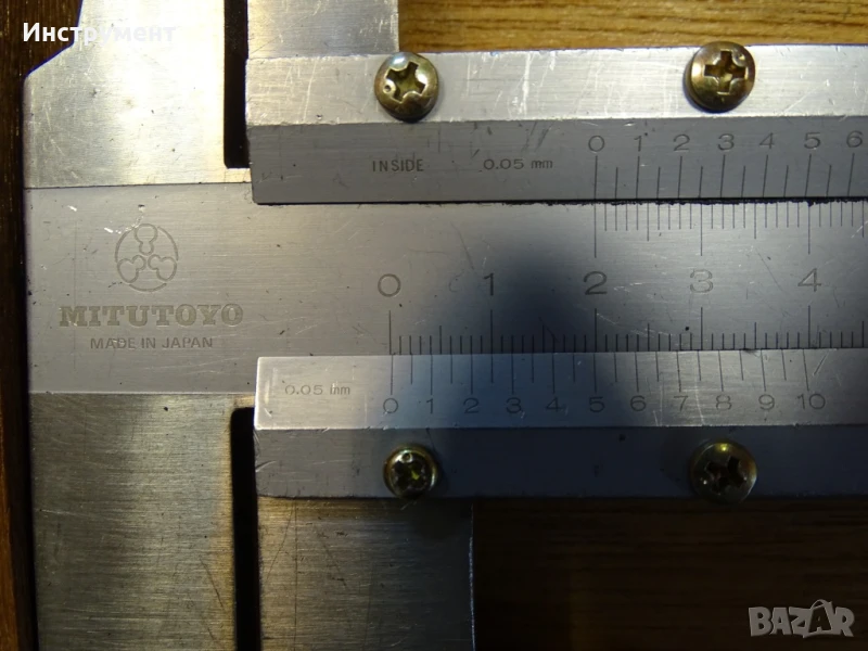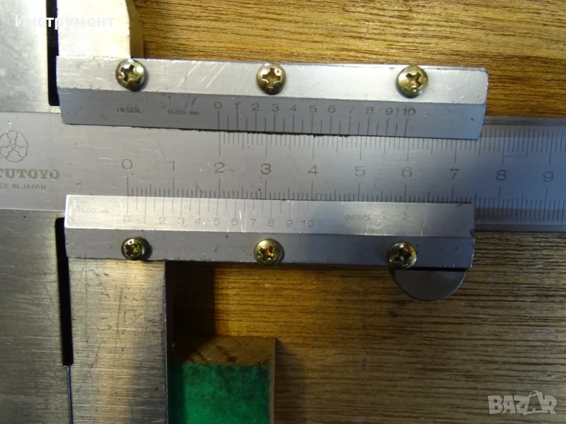 Предлагаме употребяван, със степен на износеност около 30%, японски шублер със скосени върхове, производство на Mitutoyo.