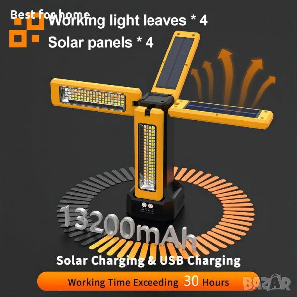 13200mAh акумулаторна соларна работна лампа със стойка и дистанционно