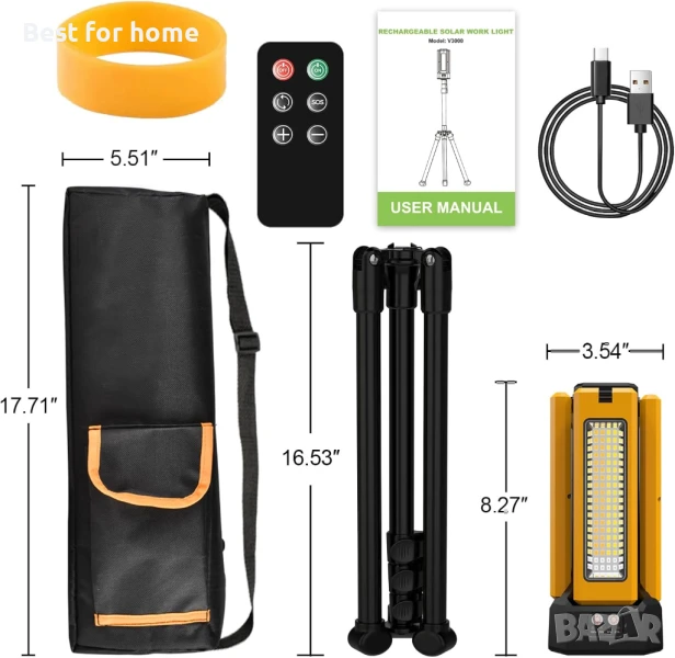 【Удобна чанта за носене】 Строителната лампа се предлага с висококачествена чанта за носене, която държи лампите и стойката, а също така може да бъде обикновена чанта за носене на малки неща, когато излизате на работа или пътувате.
