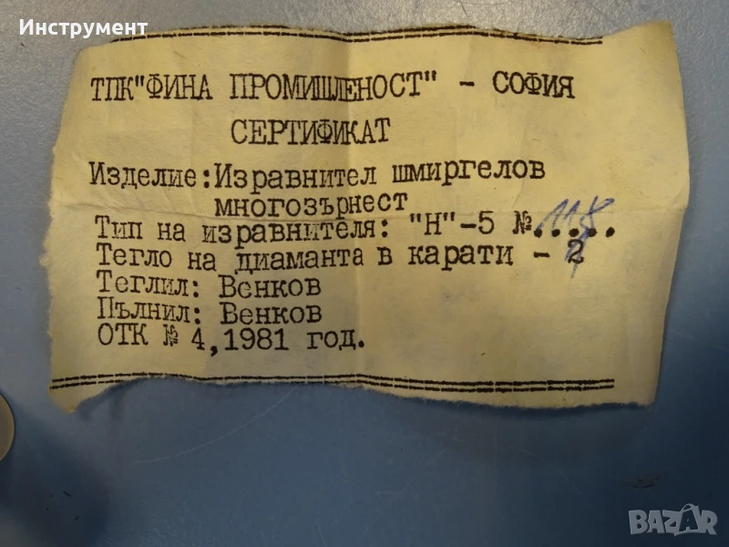Предлагаме нов шмергелов изравнител многозърнест. българско производство на ТПК "Фина Промишленост" гр. София.