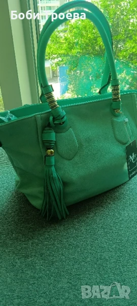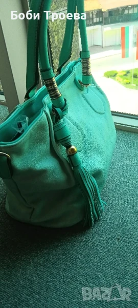 кожа в морско зелен цвят, снимка 4 - Чанти - 50809692 1/4