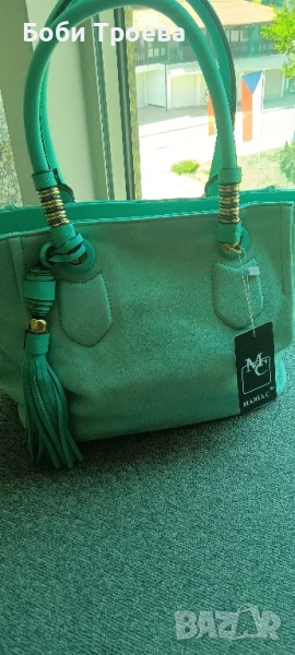 Дамска чанта среден размер, изработена от висококачествена еко кожа в морско зелен цвят → Обява 50809692