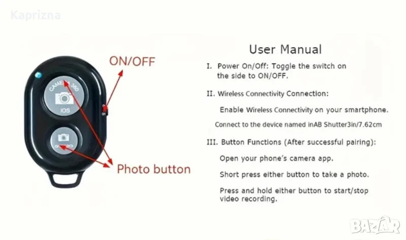 безжично Bluetooth дистанционно управление, по-специално "AB Shutter3", предназначено за правене на снимки и видеоклипове със смартфони и таблети.