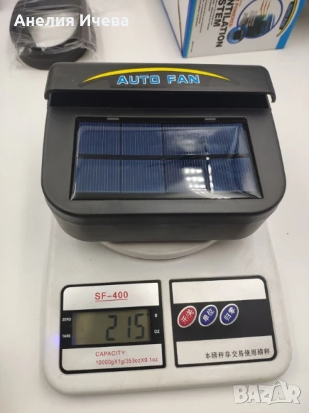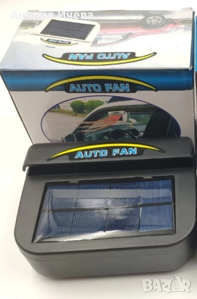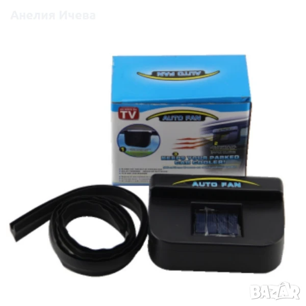 Соларна охлаждаща система за кола / Размери: 148/58/110 мм; Размери на соларният панел – дължина около 74 мм; Мощност: 0.5W; Волтаж- 2V; 120ma.