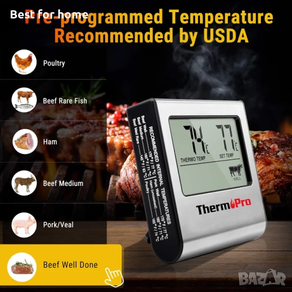 ThermoPro TP16 Цифров кухненски термометър за месо с таймер и аларма