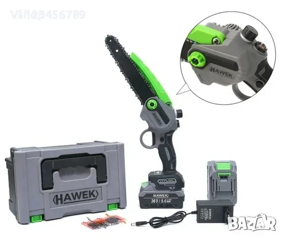Акумулаторна Резачка 25см Шина HAWEK с Автоматично Омасляване на Веригата 36v + БОНУС Втора Верига