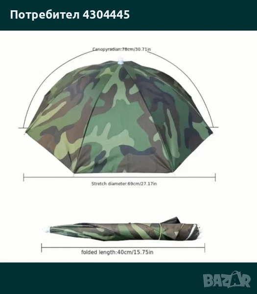 чадър ☔ шапка камуфлаж 69 см. → Обява 50811277
