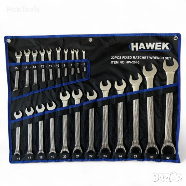 Комплект звездогаечни тресчотни ключове 6 – 32 мм 22 части Hawek