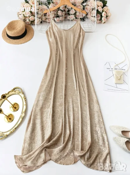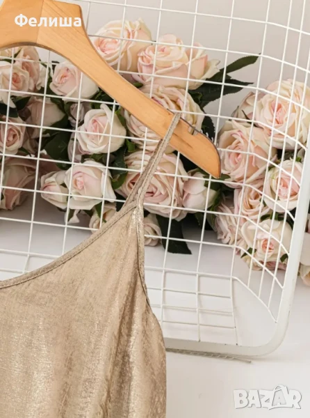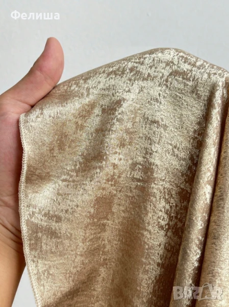 Цветът „Течно Злато“ носи усещане за топлина и изтънченост, докато висококачествената изработка и изящният плат придават на модела магична и запомняща се визия.