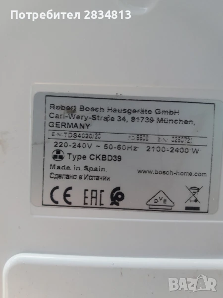 Парна станция Bosch TDS4020 → Обява 50812102